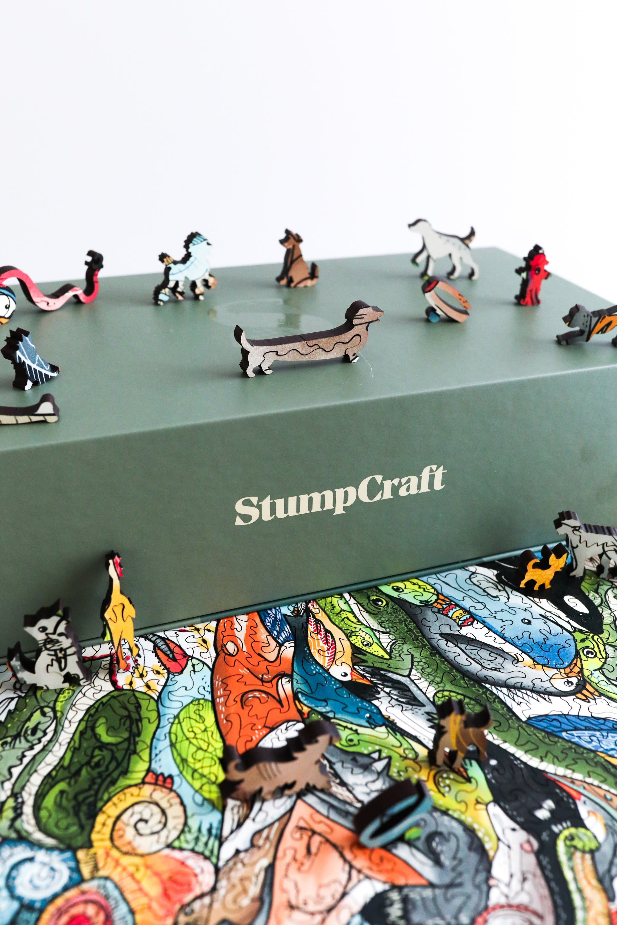 are made in a small workshop in Calgary, Alberta, by a dedicated team of StumpCrafters. Art for each puzzle is carefully printed directly onto 6mm thick wood and then laser-cut following a unique, thematic puzzle pattern inspired by the artwork itself.